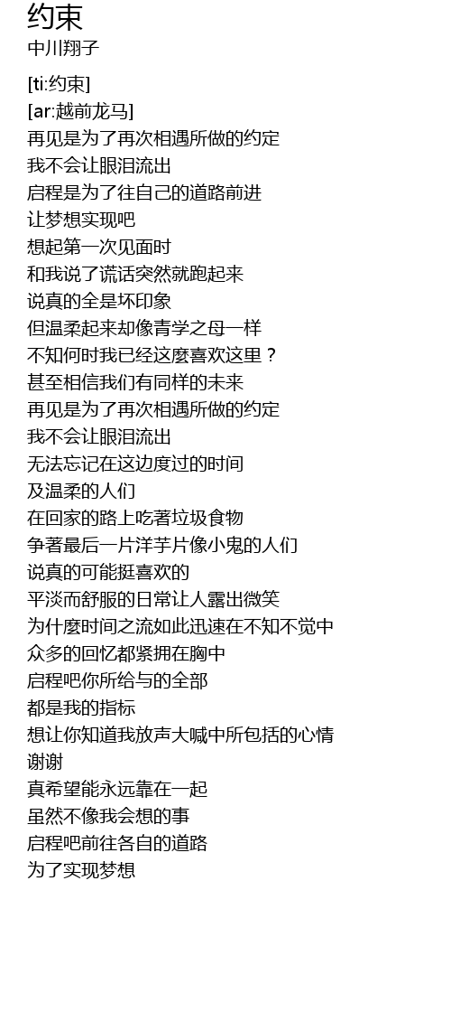 | [00:01.159] | 再见是为了再次相遇所做的约定 |
