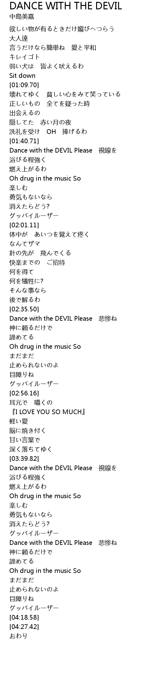 | [03:58.60] | Dance with the DEVIL Please 悲惨ね |