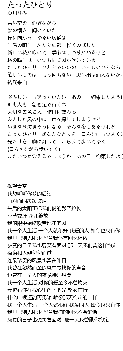 | たったひとり ひとりでいいの いとしいひとなら あなただけ | |