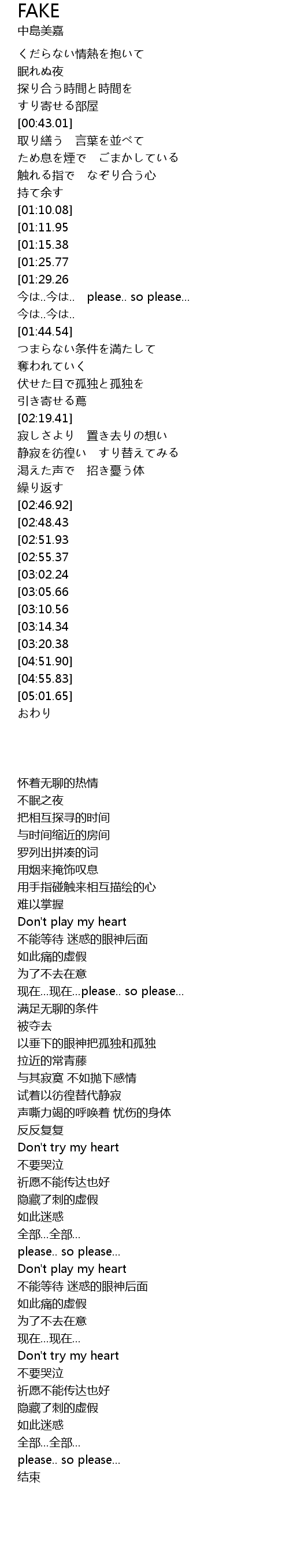 | [04:00.72][01:25.77] | 痛いほどのfake |