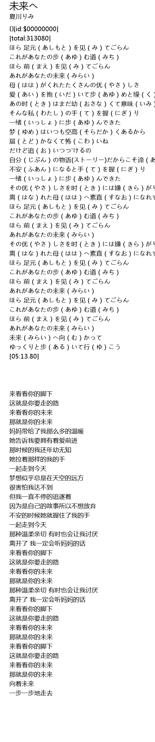| [00:26.290] | ほら 前(まえ)を见(み)てごらん |