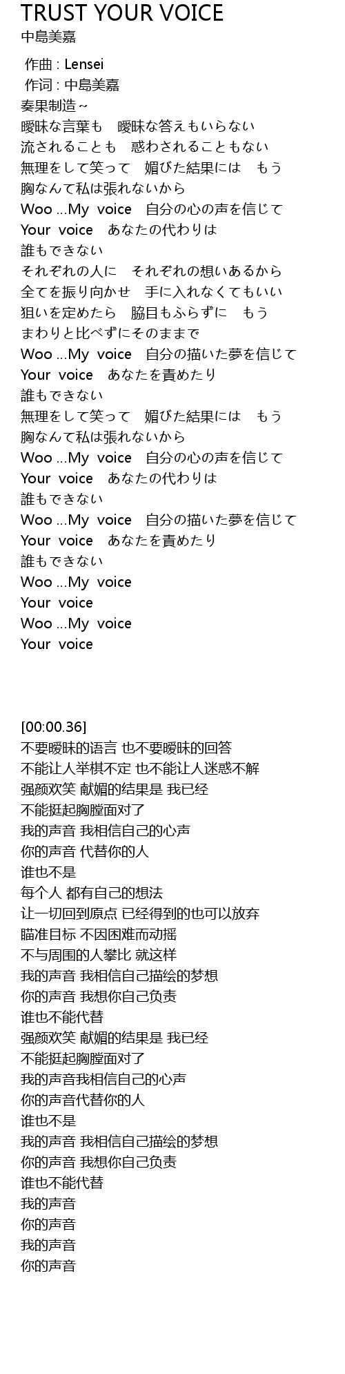 | [00:48.20] | Woo …My voice 自分の心の声を信じて |