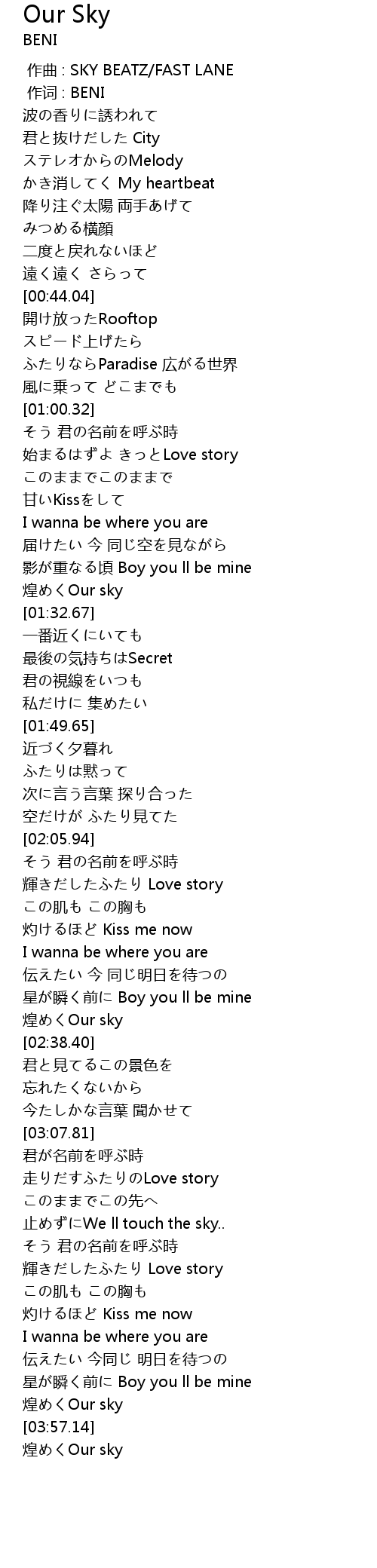 | [03:22.22] | 止めずにWe ll touch the sky.. |