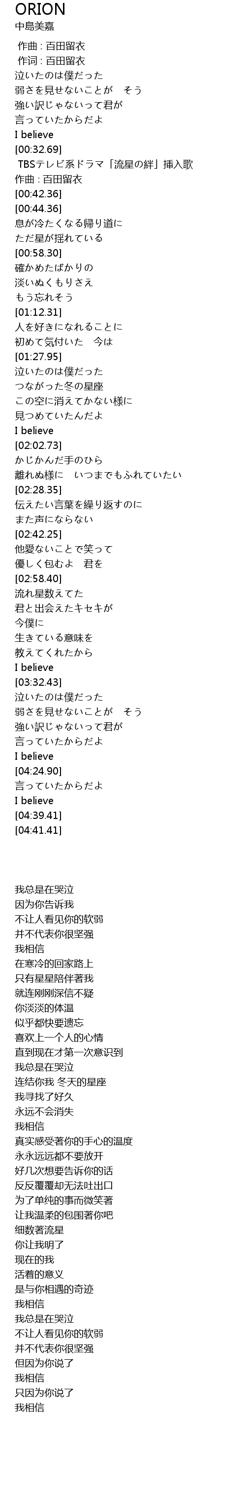 | [00:36.36] | TBSテレビ系ドラマ「流星の絆」挿入歌 |