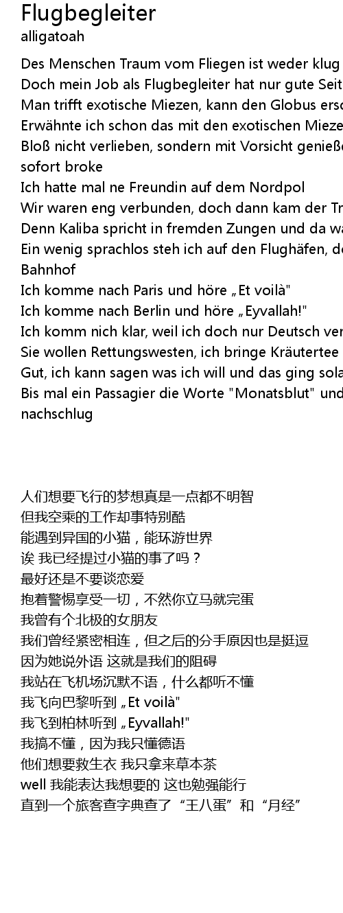 | [01:06.68] | Bis mal ein Passagier die Worte " Monatsblut" und " Hurensohn" nachschlug |