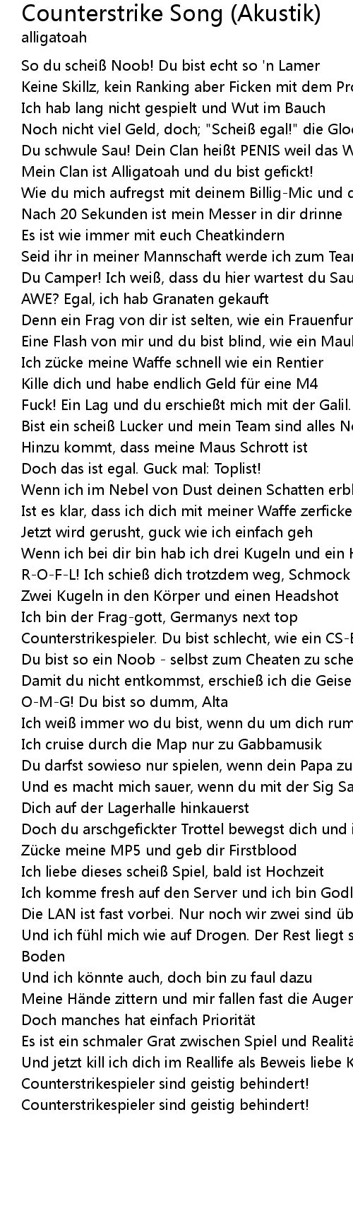 | [00:23.82] | Mein Clan ist Alligatoah und du bist gefickt! |