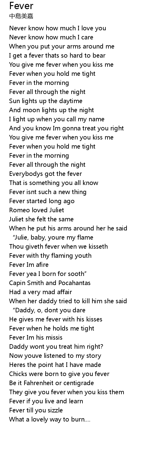 | [00:55.65] | You give me fever when you kiss me |