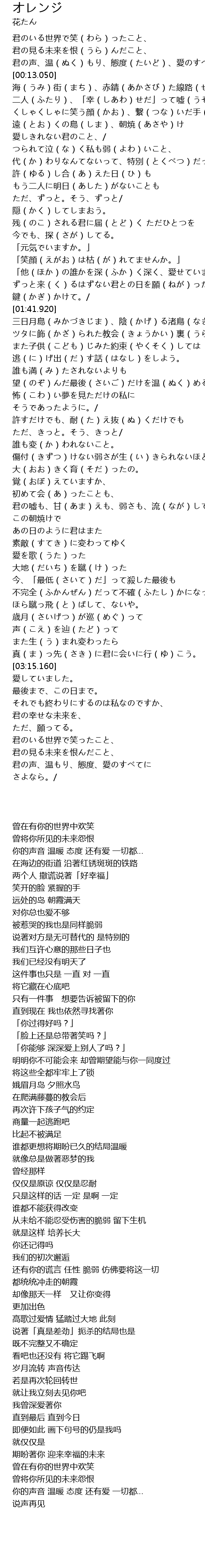| [03:03.250] | 歳月(さいげつ)が巡(めぐ)って 声(こえ)を辿(たど)って |