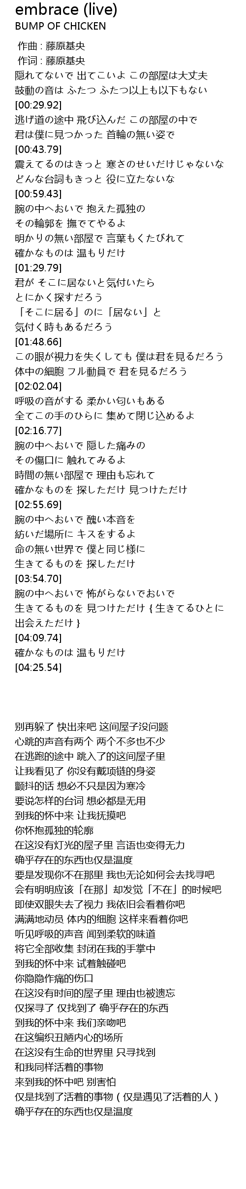 | [00:01.00] | 作词 : 藤原基央 |