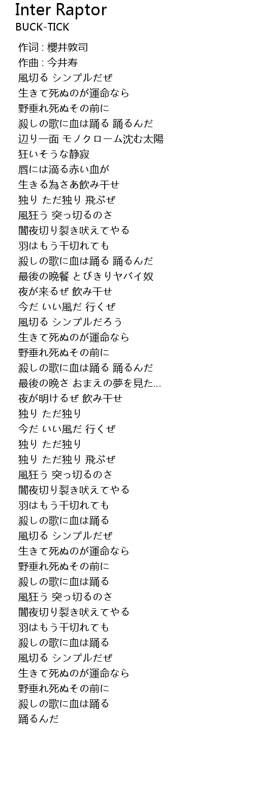 | [00:00.000] | 作词 : 櫻井敦司 |