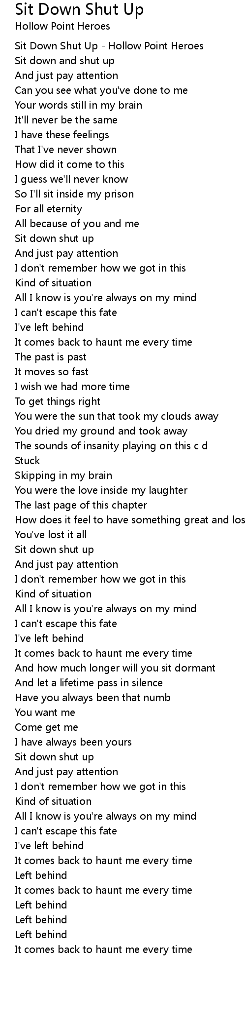 Sit down shut up |