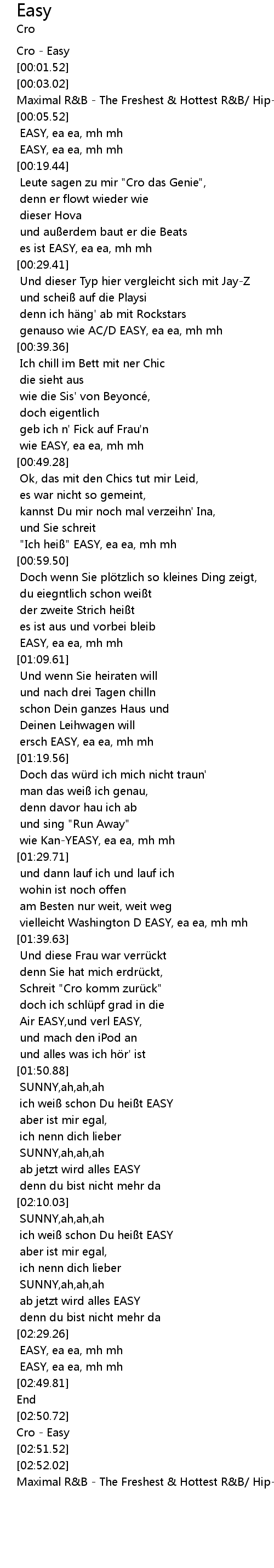 | [00:45.03] | wie EASY, ea ea, mh mh |