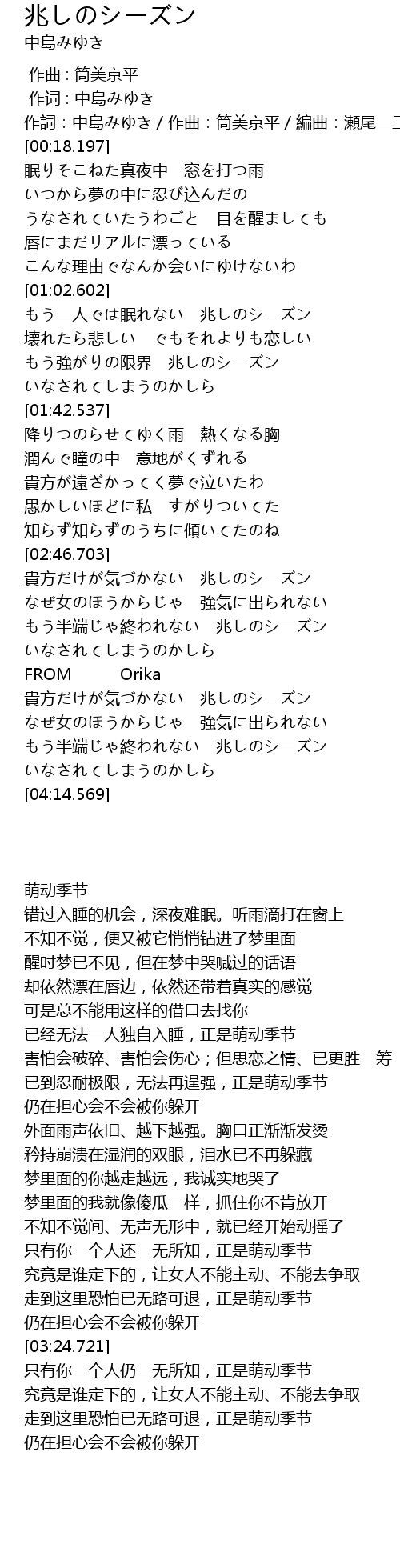 | [01:05.209] | もう一人では眠れない 兆しのシーズン |