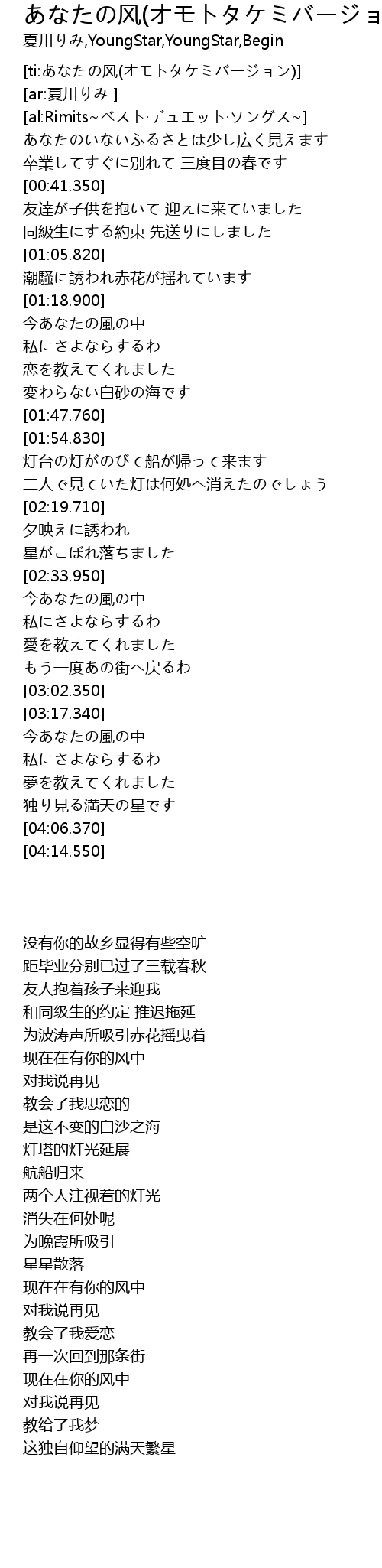 | [ti:あなたの风(オモトタケミバージョン)] | |