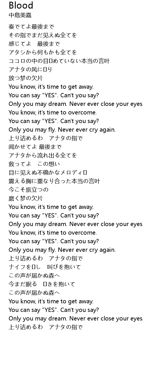 | [03:59.31] | Only you may dream. Never ever close your eyes. |