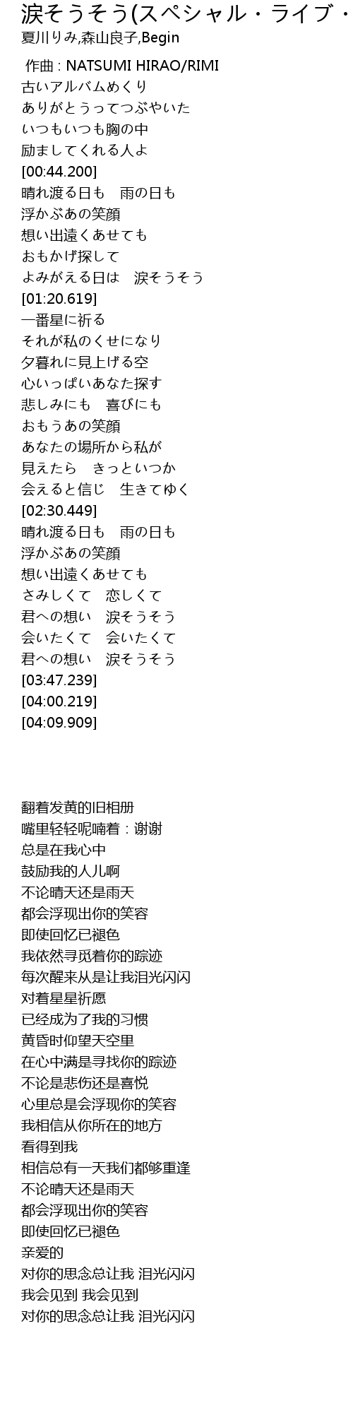| [00:00.00] | zuo qu : NATSUMI HIRAO RIMI |