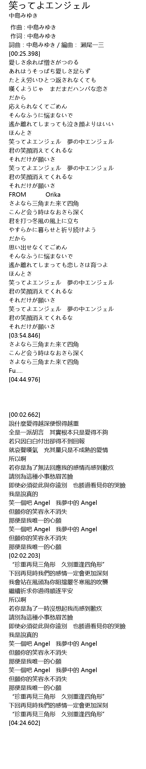 | [03:34.634] | 笑ってよエンジェル 夢の中エンジェル |