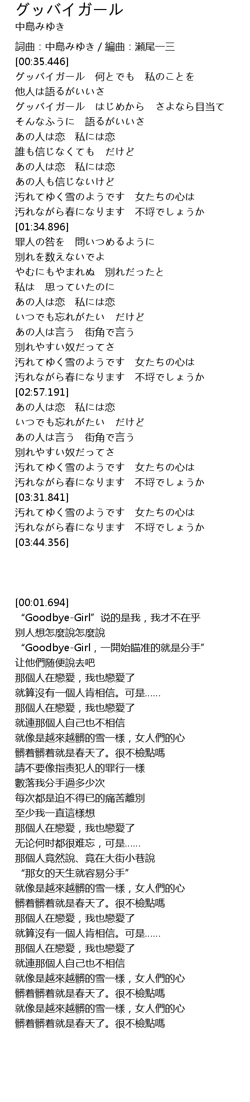 | [00:36.898] | グッバイガール 何とでも 私のことを |