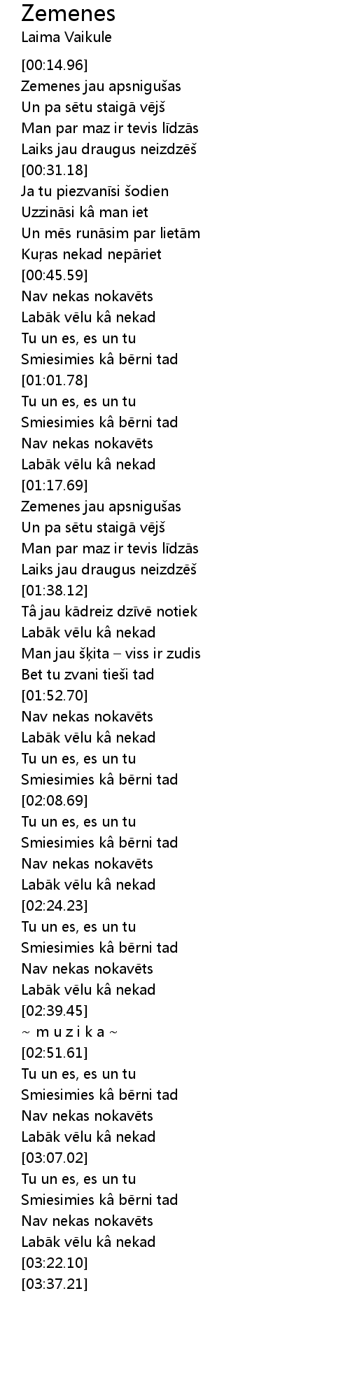 | [03:18.13] | Labāk vēlu kâ nekad |