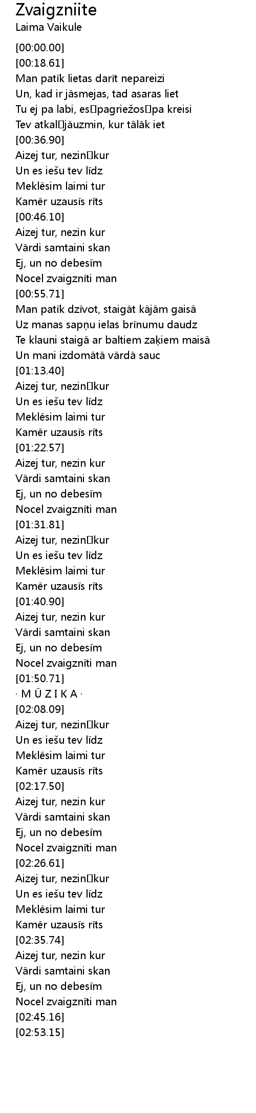 | [00:23.83] | Un, kad ir jā smejas, tad asaras liet |