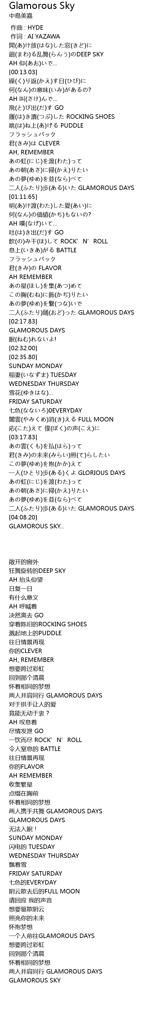| [04:12.69] | GLAMOROUS SKY... |