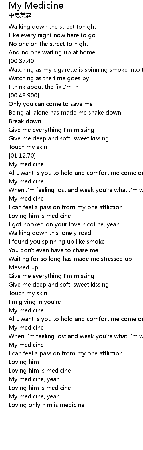 | [01:18.100] | My medicine |