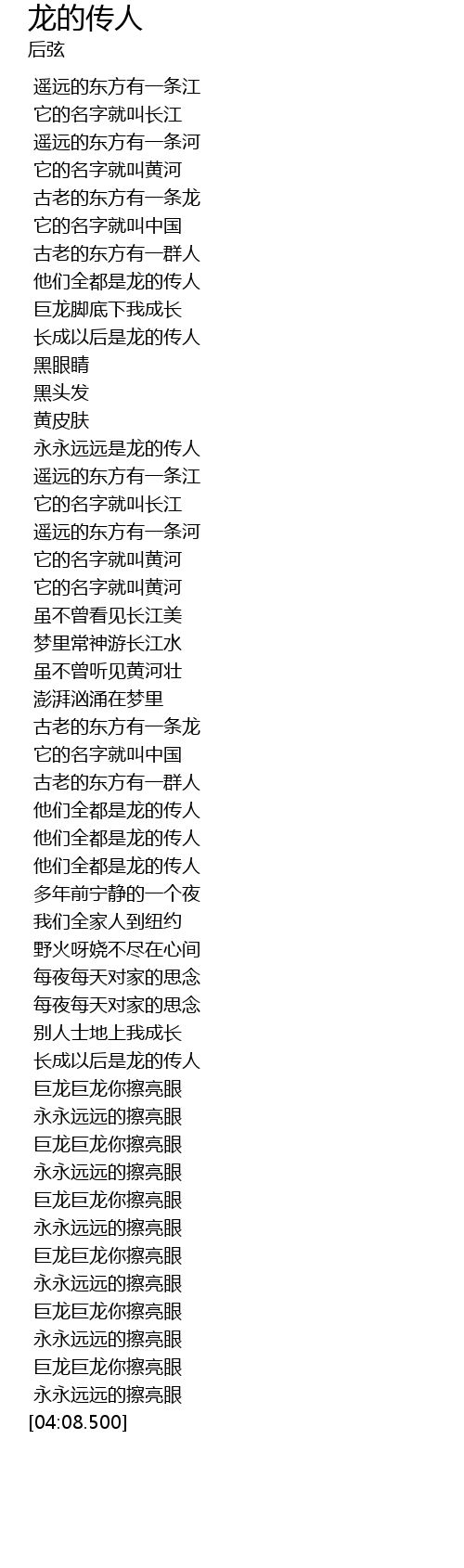 | [00:53.500] | 长成以后是龙的传人 |