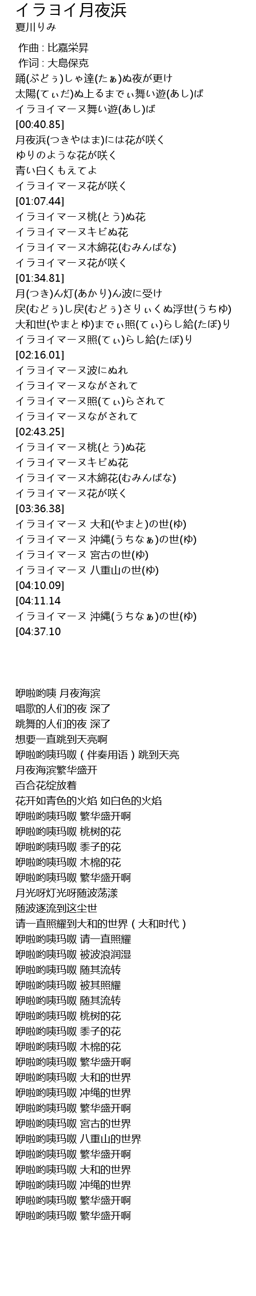 | [03:09.89] | イラヨイマーヌ桃(とう)ぬ花 |
