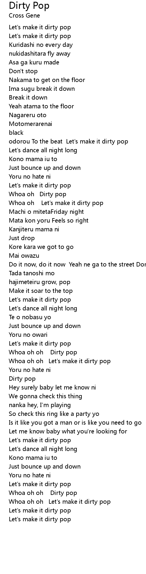 Whoa oh Let's make it dirty pop |