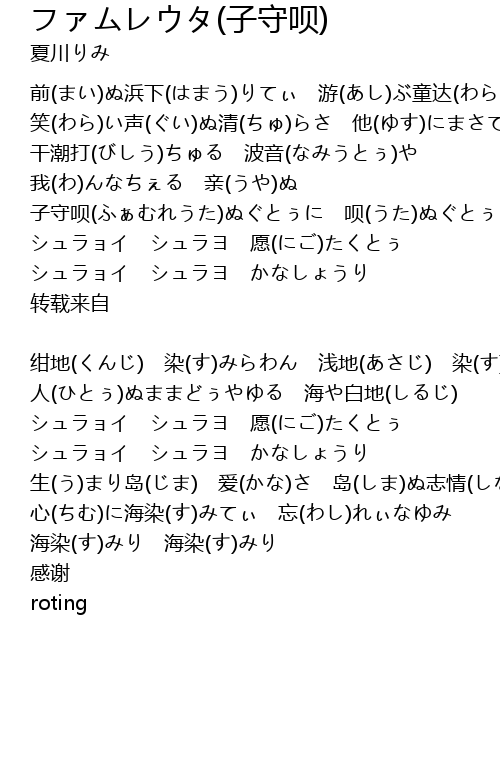 | 子守呗(ふぁむれうた)ぬぐとぅに 呗(うた)ぬぐとぅに | |