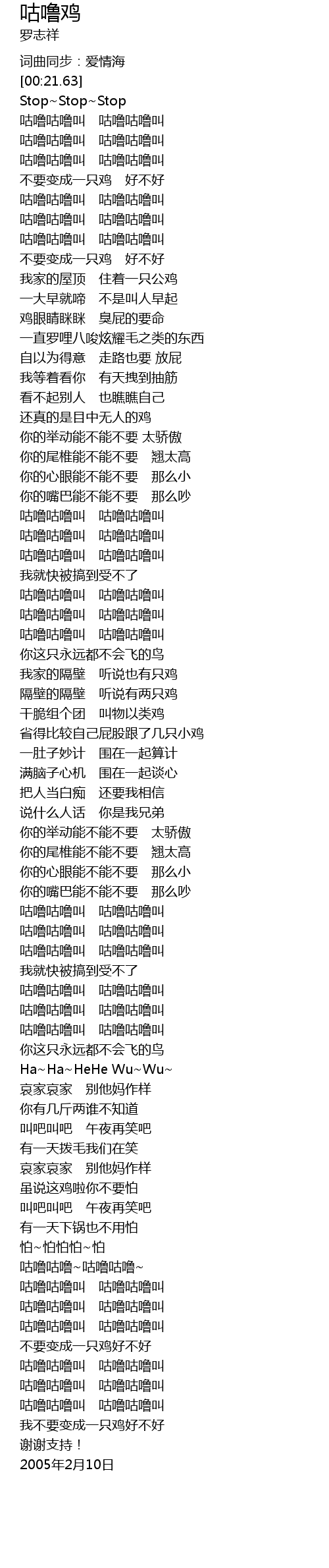 | [00:44.47] | 不要变成一只鸡 好不好 |