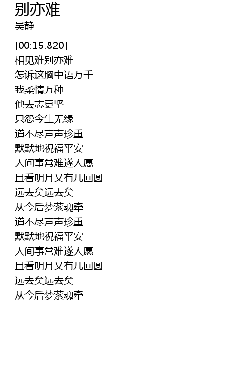 | [01:43.650] | rén jiān shì cháng nán suì rén yuàn |