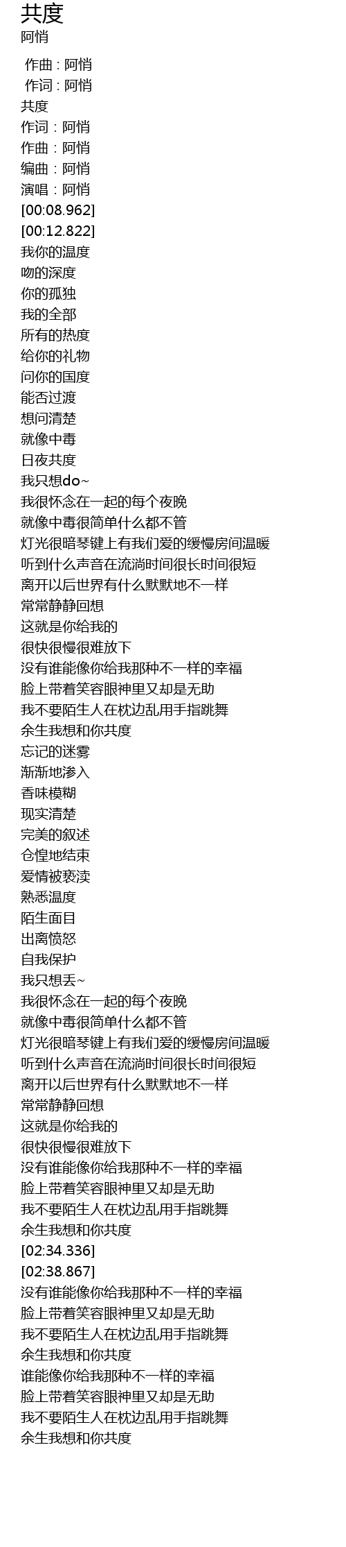 | [02:31.29] | yú shēng wǒ xiǎng hé nǐ gòng dù |