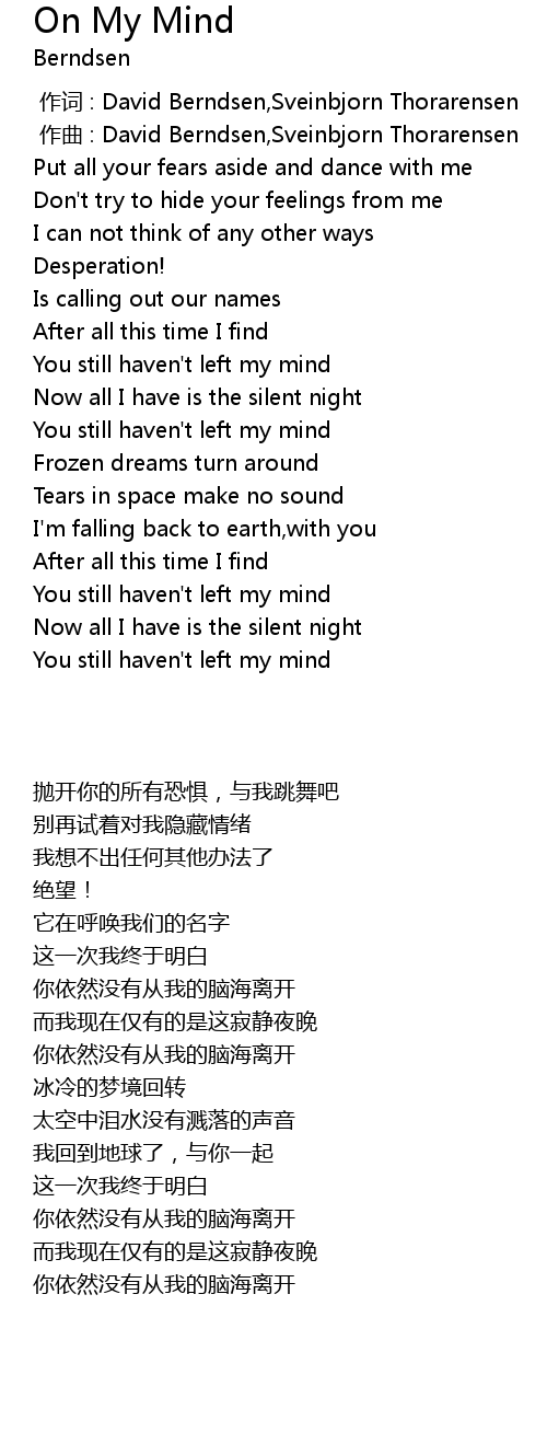 | [00:01.000] | 作曲 : David Berndsen,Sveinbjorn Thorarensen |