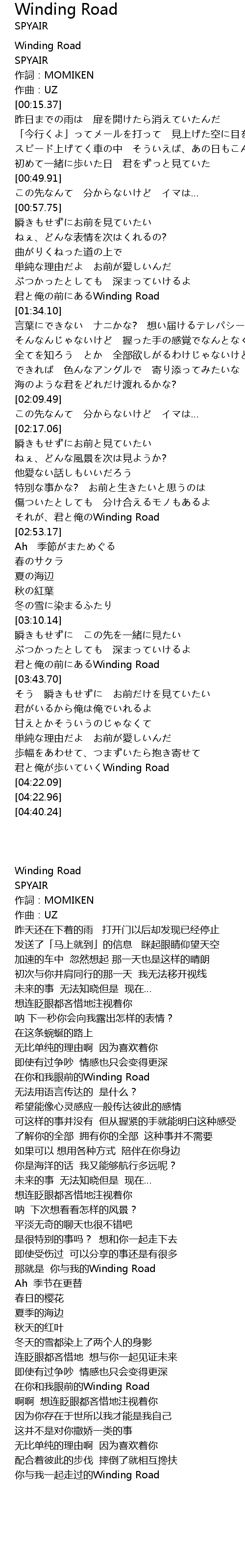| [04:14.25] | 君と俺が歩いていくWinding Road |