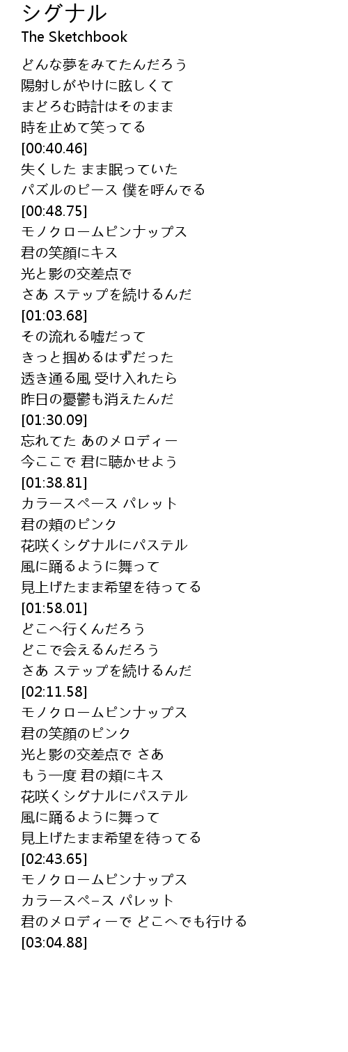 | [01:44.07] | 花咲くシグナルにパステル |