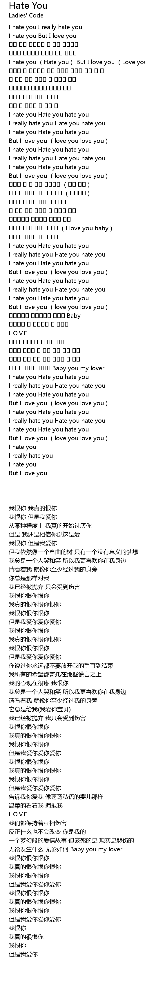 | [00:23.26] | I hate you (Hate you) But I love you (Love you) |