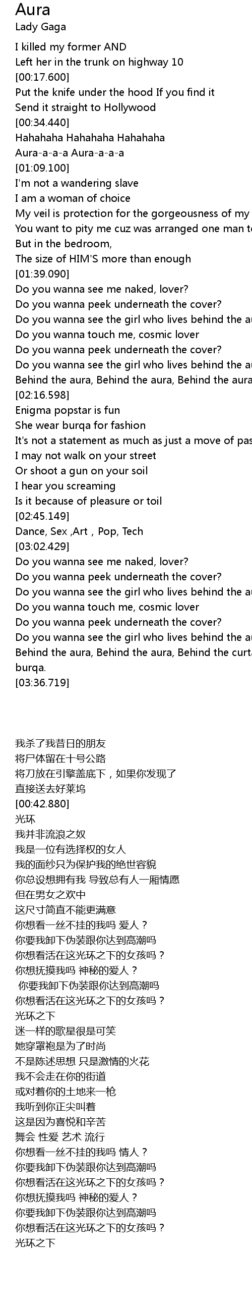 | [03:10.758] | Do you wanna see the girl who lives behind the aura, behind the aura? |