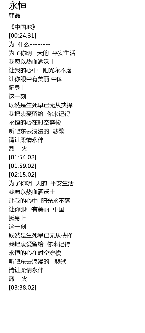 | [01:38.01] | 请让柔情永伴-------- |