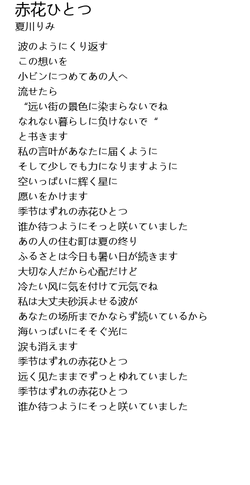 | [01:56.85] | 季节はずれの赤花ひとつ |