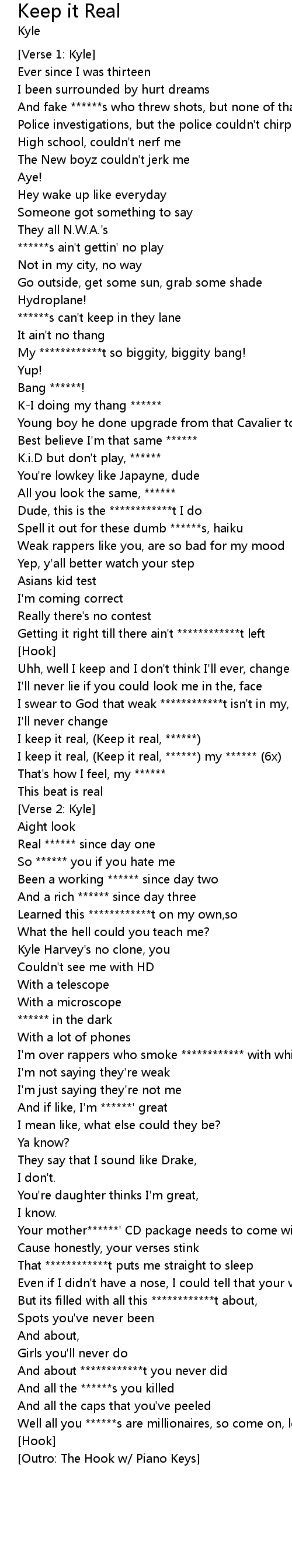 I keep it real, (Keep it real, ******) my ****** (6x) |