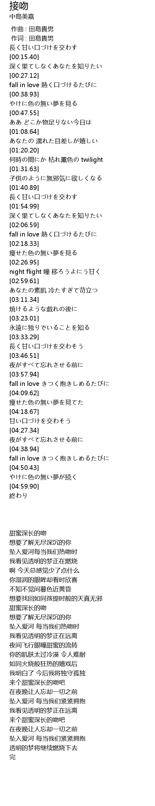 | [00:05.97] | 長く甘い口づけを交わす |
