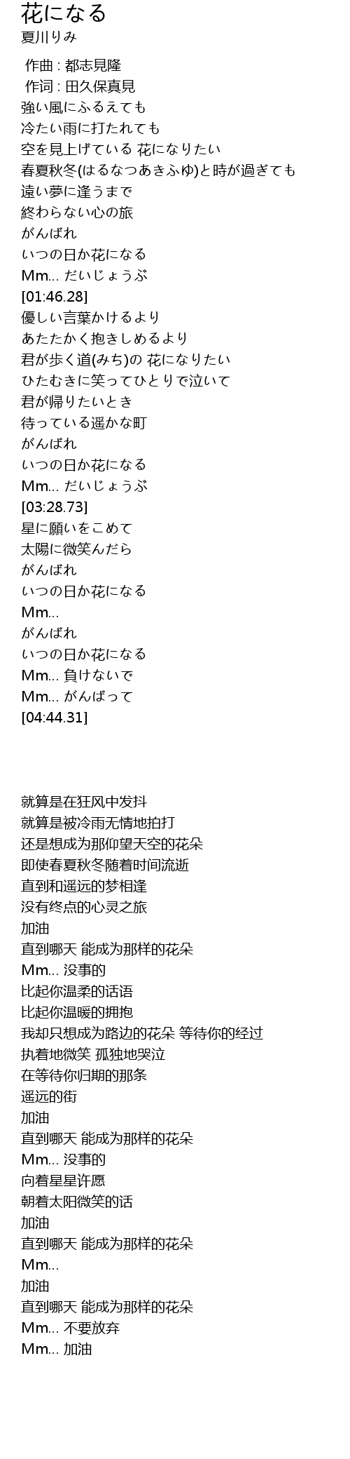 | [00:44.57] | 空を見上げている 花になりたい |