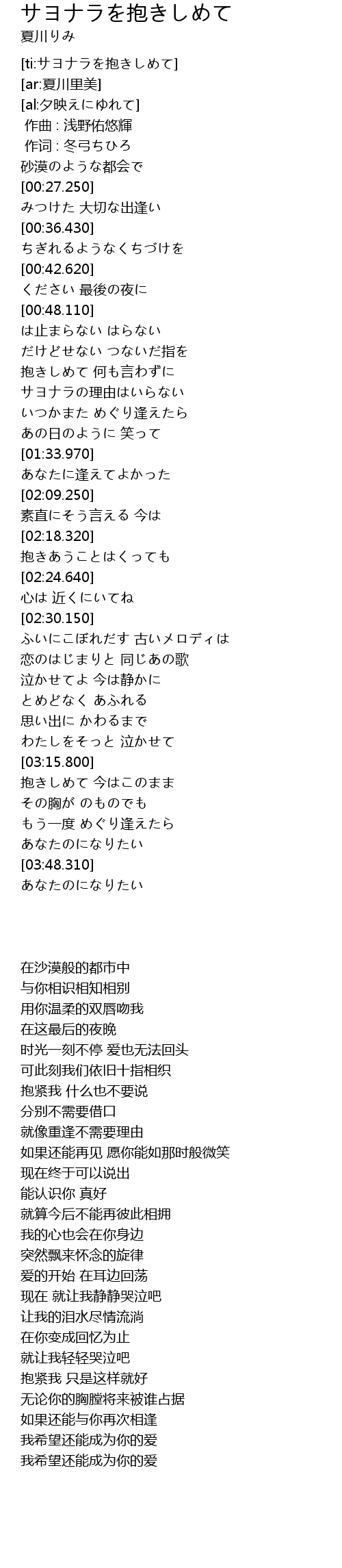 | [03:20.480] | 抱きしめて 今はこのまま |