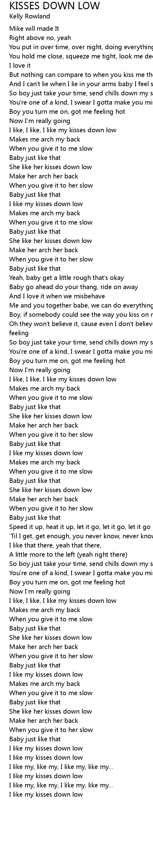 I like my kisses down low |