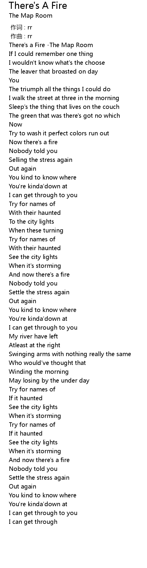 | [00:01.123] | There's a Fire -The Map Room |