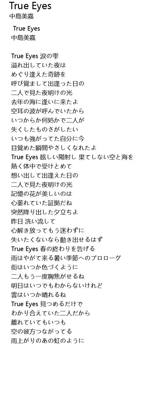 | True Eyes 眩しい陽射し 果てしない空と海を | |