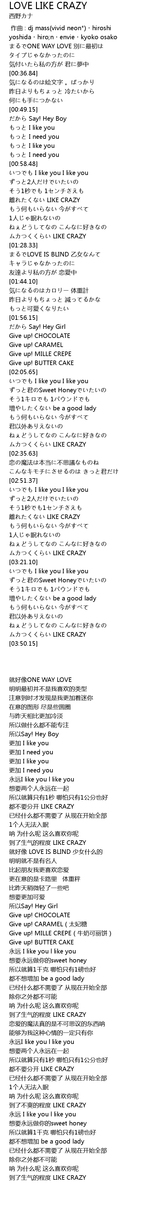 | [03:17.81] | ムカつくくらい LIKE CRAZY |