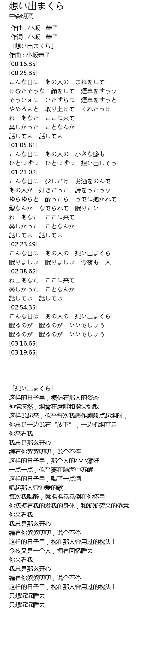 | [02:57.12] | こんな日は あの人の 想い出まくら |