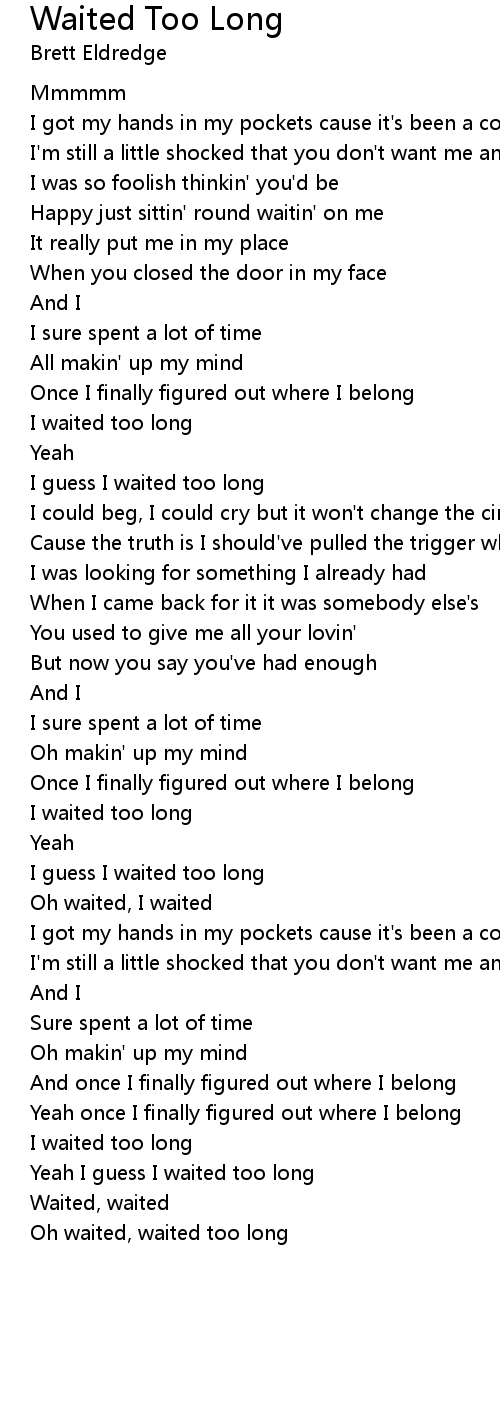 Oh waited, waited too long |